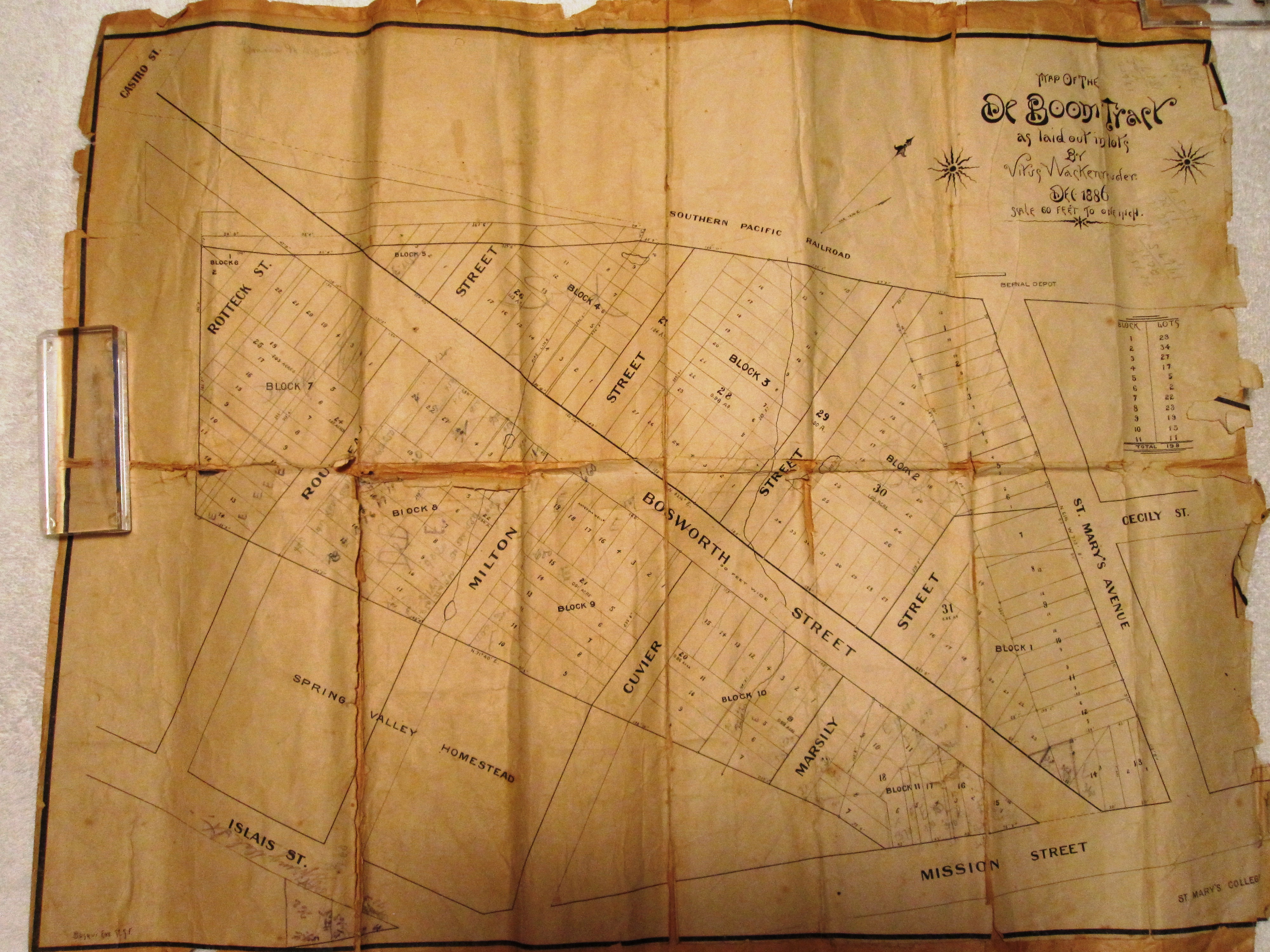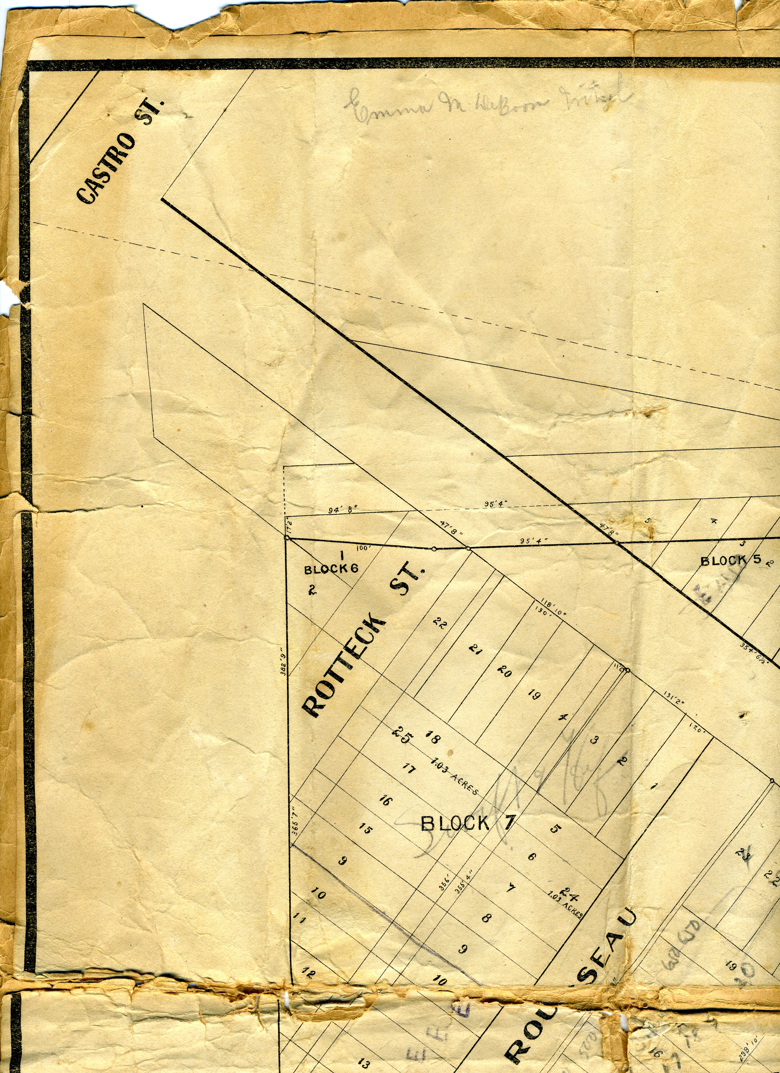 “When Peter Romain De Boom, the god-father of 18 year.Romain Camille De Boom, died in 1857, he left a tract of land of 13 acres on Mission Street opposite old St. Mary’s College (now St. Mary’s Residential Park) to his god-son Romain (my father) in trust for the latter’s unborn children. In Belgium in those days such a bequest was legal, but not in California. The 13 acres are known as the “De Boom Tract, ” wrote Emma. Legal or not, RC DeBoom and his children enjoyed the proceeds of the De Boom Tract for decades. (See SF De Boom Tract Legacy page under RC De Boom.)