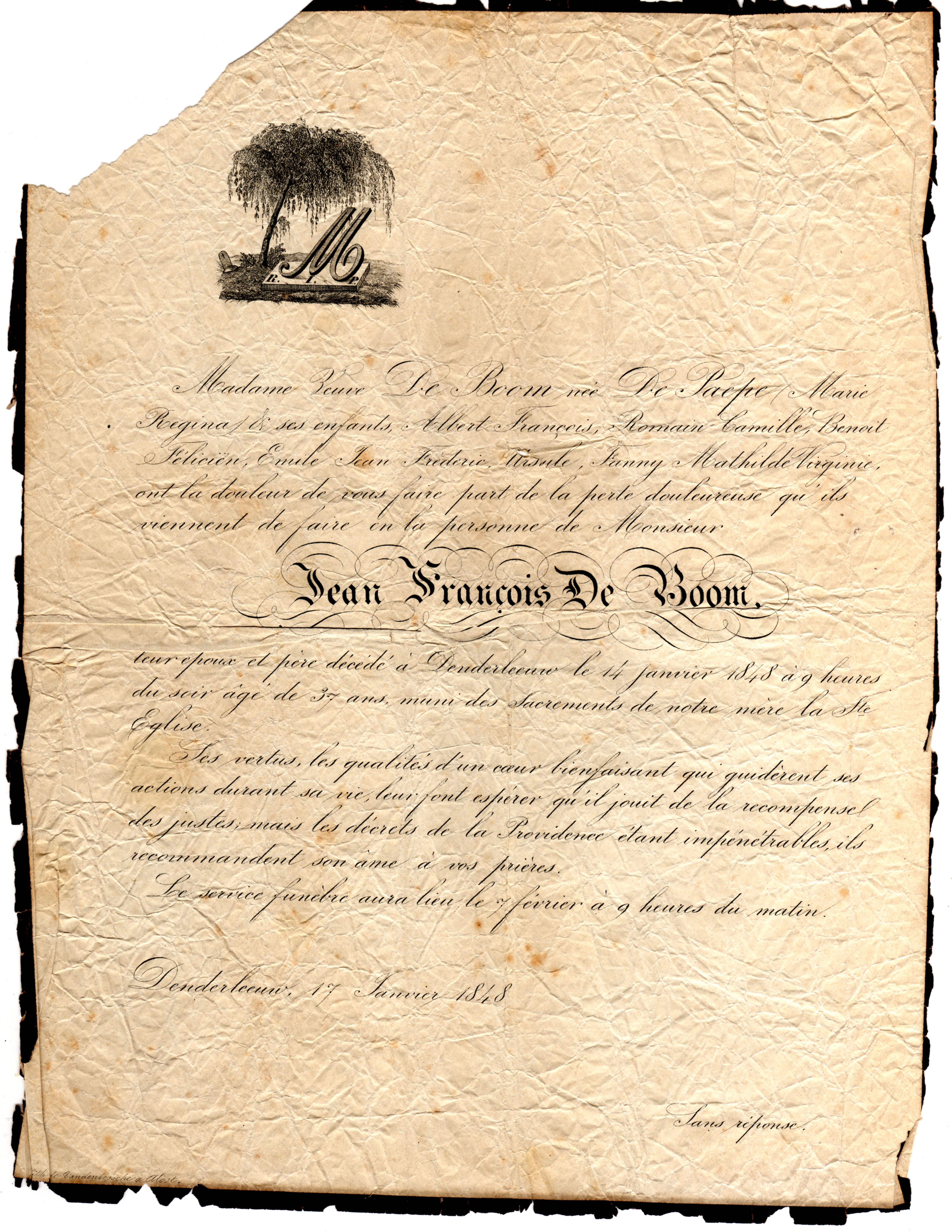 In early 2014, Pierre-André Morterol sent the files below (Photos, Letters & Death Notices) from the De Boom – De Laurencel archives that he maintains in France. Merci beaucoup!