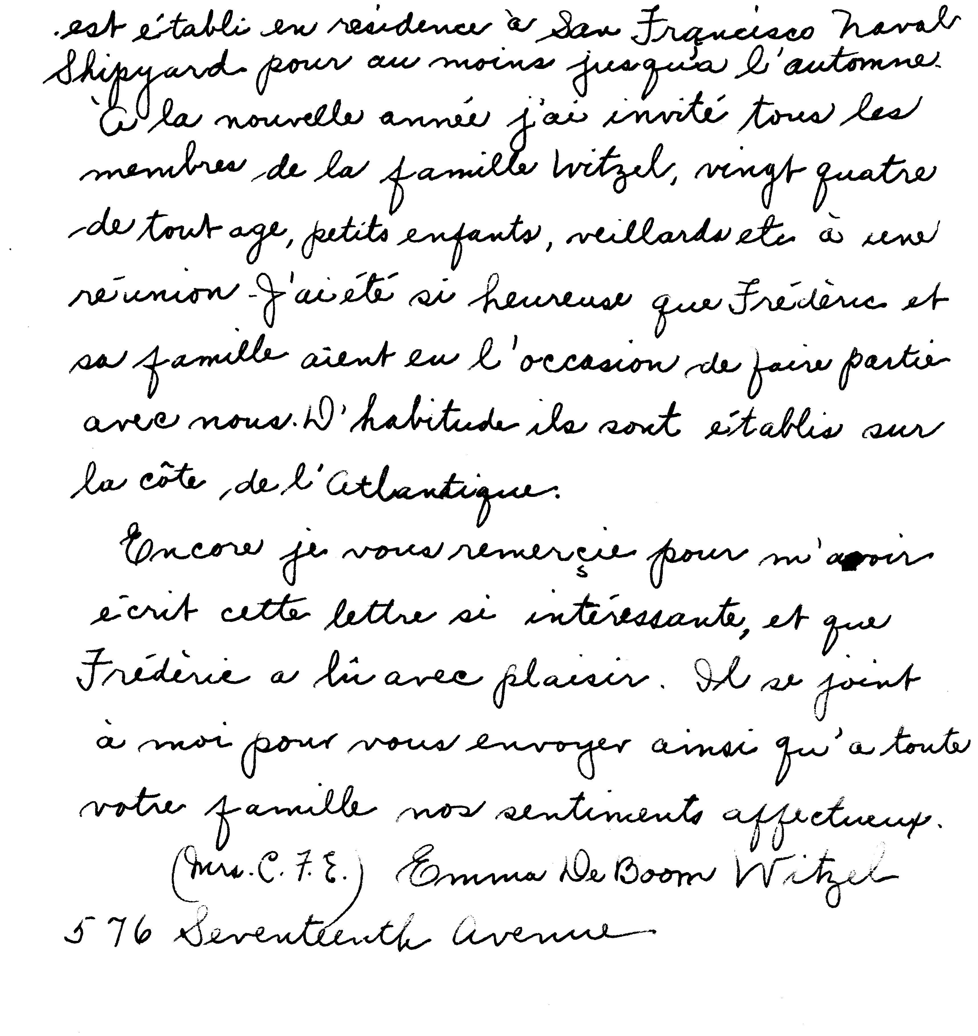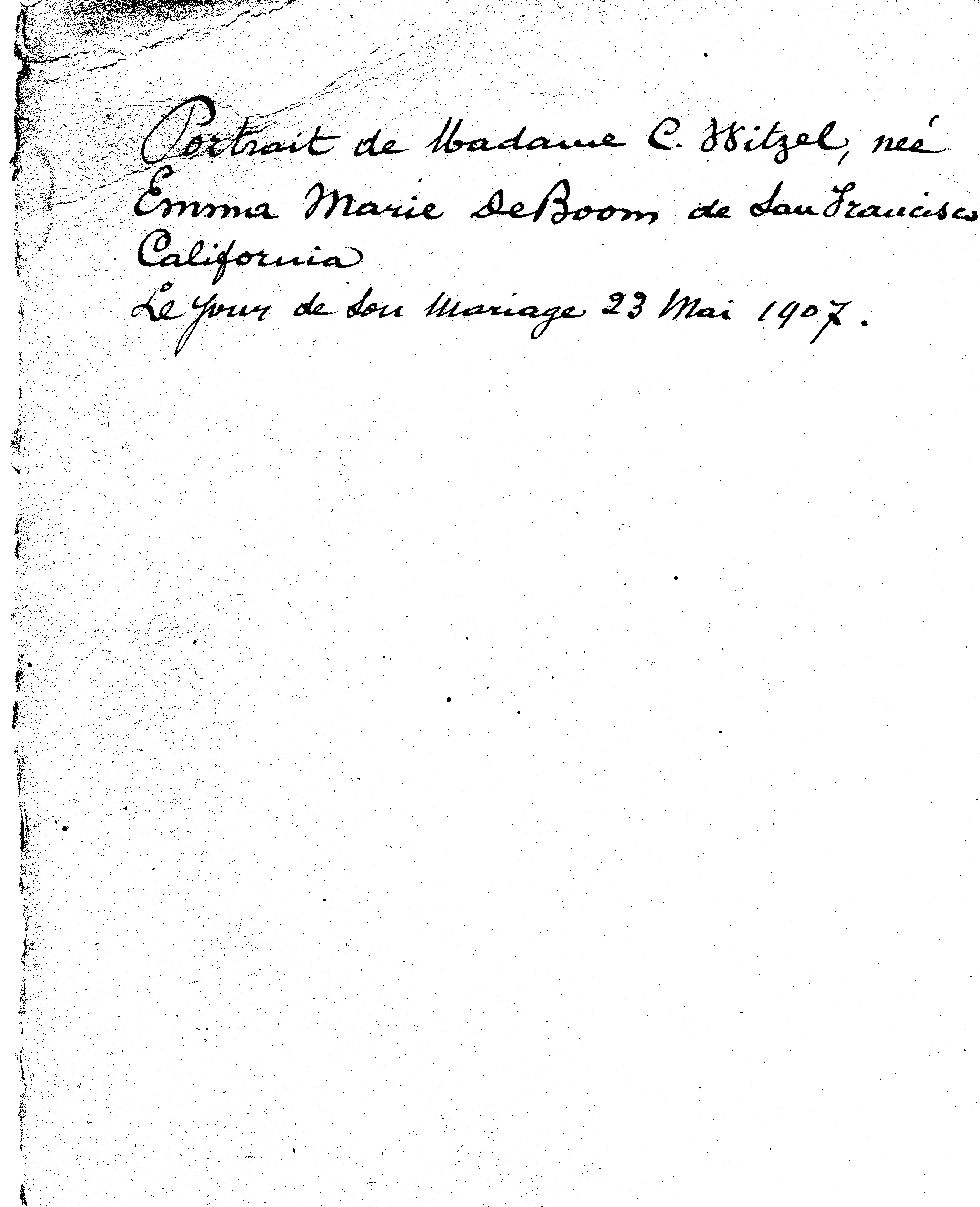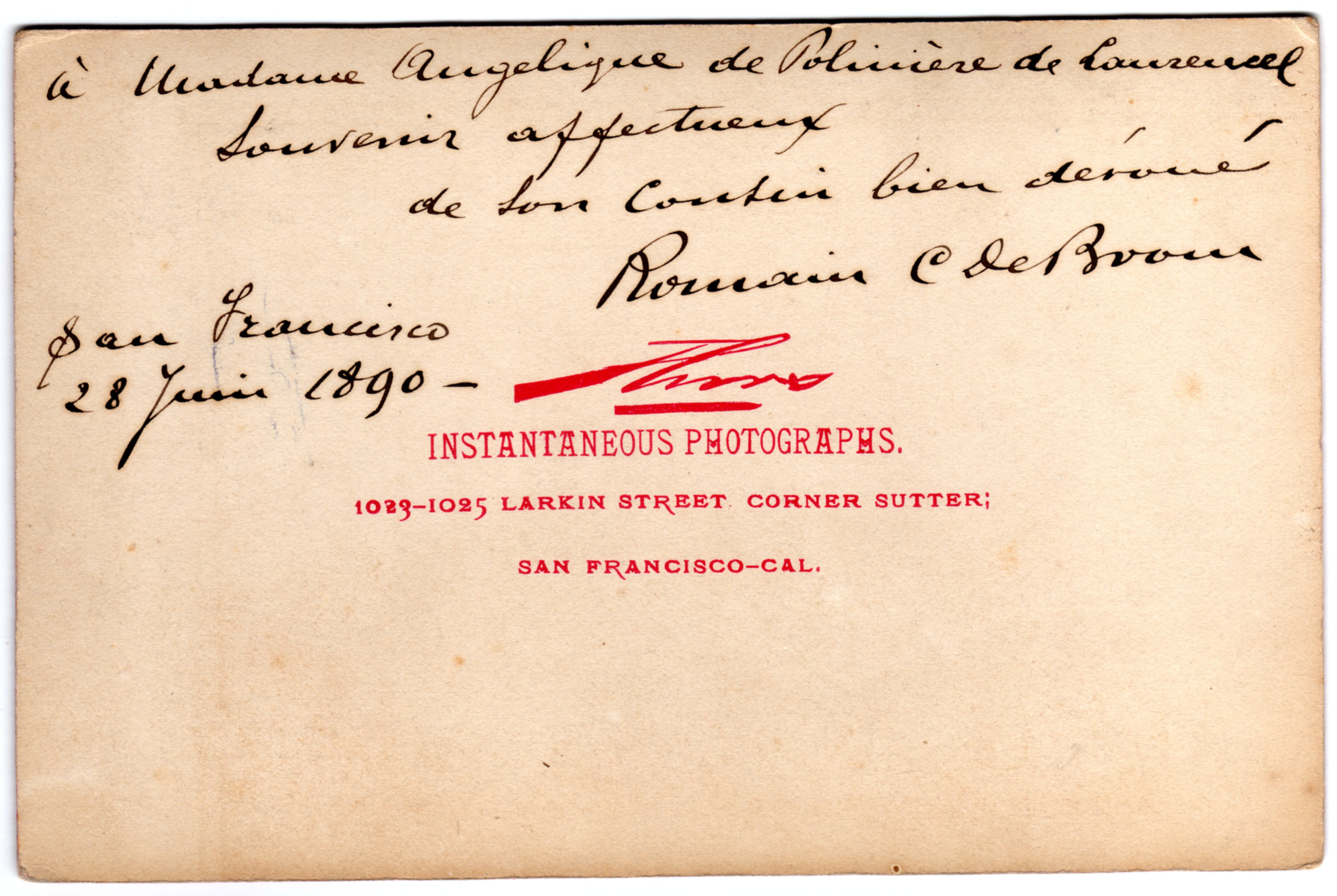 Henry de Laurencel is shown here in 1865, 10 years after his marriage in San Francisco to Jeanne Frederique de Boom. Their descendants include Emma’s cousin, Angelique de Poliniere. Some of their correspondence is reproduced on this page and on Emma’s Correspondence page.